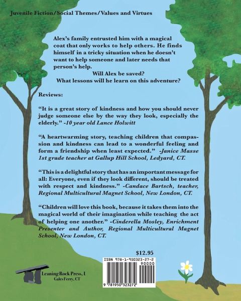Alex has a secret. For generations, his family has possessed a magical flying coat, which only works if used to help others. On this adventure, Alex encounters an old woman who is begging for help, but she scares him and he flies away. The coat begins to lose is ability to fly causing Alex to crash into a tree. Now he needs help, but the only person who could help him is the old woman. Will Alex be saved? What lessons will he learn on this adventure? Find out in this suspenseful book that will leave you wanting to go on your own adventures to help others.