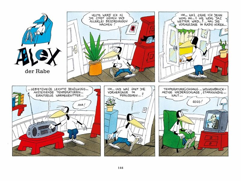 Das Leben hält so manche Herausforderung parat: den Lyrikwettbewerb des Seifenfachgeschäfts Müller etwa. Den dringlichen Zahnarzttermin des ausgebufften Zahnarztverweigeres Professor Alfonso. Den extragroßen Frühjahrsputz oder gar den gemeinsamen Urlaub mit dem nervtötenden Nervenbündel Thadäus (schluck!). Doch Alex findet für jede noch so ausweglose Misere eine Lösung. Wenn auch nicht unbedingt die richtige... 60 neue Alex-Geschichten über Künstliche Intelligenz ("Dietmar, die mechanische Kapazität auf allen Gebieten"), Kino-Blockbuster ("Cowboys hassen kalten Kaffee") und Fashion Statements ("In dieser Saison trägt man Sombrero!"). Berühmt für seine Figur Sondermann und seine Cartoons im ZEIT-Magazin, schuf Bernd Pfarr mit Alex der Rabe ein nicht minder schräges, dabei aber liebenswertes Entenhausen für junge und alte Comic-Fans. "Bernd Pfarrs Bilder sind so schön, dass man in ihnen wohnen möchte." - Wiglaf Droste, taz