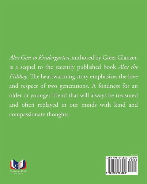 Alex Goes to Kindergarten, authored by Greer Glanzer, is a sequel to the recently published book Alex the Fishboy. The heartwarming story emphasizes the love and respect of two generations. A fondness for an older or younger friend that will always be treasured and often replayed in our minds with kind and compassionate thoughts.