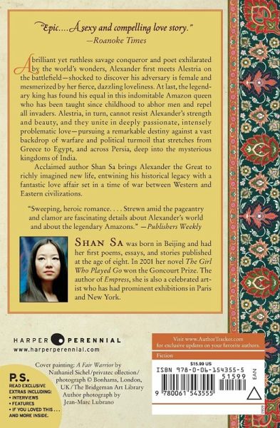 Alexander and Alestria is the imaginative tale of the dramatic love affair between Alexander the Great and Alestria, queen of the Amazons, when both are at the height of their powers. Shan Sa, bestselling author of Empress, brings the familiar figure of Alexander the Great to new life, entwining his historical legacy with an imagined relationship that explores the compelling clash of western and eastern cultures.