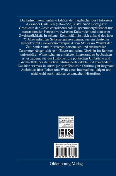 Die kritisch kommentierte Edition der Tagebücher des Historikers Alexander Cartellieri (1867-1955) leistet einen Beitrag zur Geschichte der Geschichtswissenschaft in systemübergreifender und transnationaler Perspektive zwischen Kaiserreich und deutscher Zweistaatlichkeit. In seltener Kontinuität lässt sich anhand des über 76 Jahre geführten Selbstzeugnisses zeigen, wie ein deutscher Historiker mit Frankreichschwerpunkt sein Metier im Wandel der Zeit betrieb und in welchen personellen und strukturellen Zusammenhängen sich sein Oeuvre und seine Disziplin im Rahmen universitärer Wissenschaften entfaltete. Interessant zu beobachten ist es zudem, wie der Historiker die politischen Umbrüche und Wechselfälle des deutschen Jahrhunderts erlebte und verarbeitete. Das hier erstmals in Auszügen veröffentlichte Diarium gibt insgesamt Aufschluss über Leben und Werk eines international tätigen und gleichwohl stark national verwurzelten Historikers.