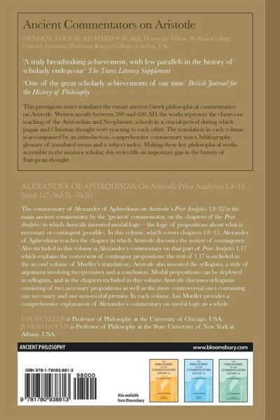 The commentary of Alexander of Aphrodisias on Aristotle's Prior Analytics 1.8-22 is the main ancient commentary, by the 'greatest' commentator, on the chapters of the Prior Analytics in which Aristotle invented modal logic - the logic of propositions about what is necessary or contingent (possible). In this volume, which covers chapters 1.8-13, Alexander of Aphrodisias reaches the chapter in which Aristotle discusses the notion of contingency. Also included in this volume is Alexander's commentary on that part of Prior Analytics 1.17 which explains the conversion of contingent propositions (the rest of 1.17 is included in the second volume of Mueller's translation). Aristotle also invented the syllogism, a style of argument involving two premises and a conclusion. Modal propositions can be deployed in syllogism, and in the chapters included in this volume Aristotle discusses syllogisms consisting of two necessary propositions as well as the more controversial ones containing one necessary and one non-modal premiss. The discussion of syllogisms containing contingent propositions is reserved for Volume 2. In each volume, Ian Mueller provides a comprehensive explanation of Alexander's commentary on modal logic as a whole.