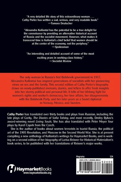 Alexandra Kollontai was a key leader of the Russian Socialist movement, the only woman in the early Soviet government, and one of the most famous women in Russian history. She worked tirelessly all her life as a speaker, writer, and organizer for women's emancipation. This compelling biography recounts her life for an emerging generation of fighters for women's liberation. Cathy Porter is a translator, teacher, and researcher on Russian history. She is the author of Fathers and Daughters: Russian Women in Revolution and translator of Alexandra Kollontai's Love of Worker Bees.