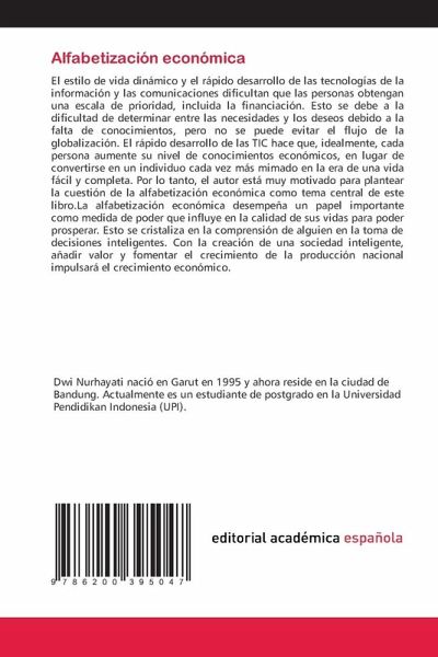 El estilo de vida dinámico y el rápido desarrollo de las tecnologías de la información y las comunicaciones dificultan que las personas obtengan una escala de prioridad, incluida la financiación. Esto se debe a la dificultad de determinar entre las necesidades y los deseos debido a la falta de conocimientos, pero no se puede evitar el flujo de la globalización. El rápido desarrollo de las TIC hace que, idealmente, cada persona aumente su nivel de conocimientos económicos, en lugar de convertirse en un individuo cada vez más mimado en la era de una vida fácil y completa. Por lo tanto, el autor está muy motivado para plantear la cuestión de la alfabetización económica como tema central de este libro.La alfabetización económica desempeña un papel importante como medida de poder que influye en la calidad de sus vidas para poder prosperar. Esto se cristaliza en la comprensión de alguien en la toma de decisiones inteligentes. Con la creación de una sociedad inteligente, añadir valor y fomentar el crecimiento de la producción nacional impulsará el crecimiento económico.