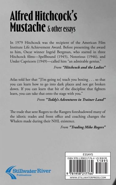 In 1979 Hitchcock was the recipient of the American Film Institute Life Achievement Award. Before presenting the award to him, Oscar winner Ingrid Bergman, who starred in three Hitchcock films-Spellbound (1945), Notorious (1946), and Under Capricorn (1949)-called him "an admirable genius."From "Hitchcock and the Ladies" Atlas told her that "[I'm going to] teach you boxing . . . so that you can learn how to go into dark places and not get broken down. If you can learn that bit of the discipline that fighters learn, you can take that onto the stage with you."From "Teddy's Adventures in Trainer Land" The trade that sent Rogers to the Rangers foreshadowed many of the idiotic trades and front office and coaching changes the Whalers made during their NHL existence.From "Trading Mike Rogers"