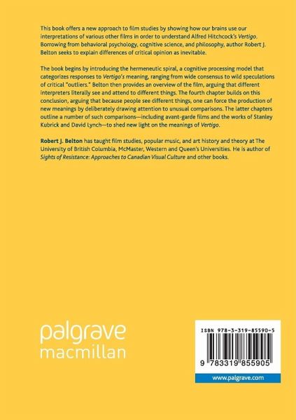 This book offers a new approach to film studies by showing how our brains use our interpretations of various other films in order to understand Alfred Hitchcock's Vertigo. Borrowing from behavioral psychology, cognitive science and philosophy, author Robert J. Belton seeks to explain differences of critical opinion as inevitable.