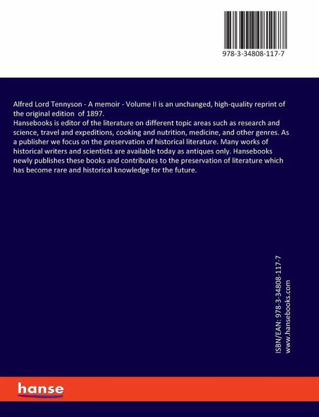 Alfred Lord Tennyson - A memoir - Volume II is an unchanged, high-quality reprint of the original edition of 1897.Hansebooks is editor of the literature on different topic areas such as research and science, travel and expeditions, cooking and nutrition, medicine, and other genres. As a publisher we focus on the preservation of historical literature. Many works of historical writers and scientists are available today as antiques only. Hansebooks newly publishes these books and contributes to the preservation of literature which has become rare and historical knowledge for the future.