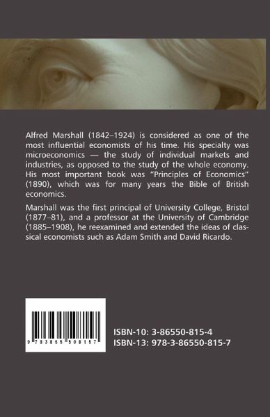 Alfred Marshall (1842-1924) is considered as one of the most influential economists of his time. His specialty was microeconomics - the study of individual markets and industries, as opposed to the study of the whole economy. His most important book was "Principles of Economics" (1890), which was for many years the Bible of British economics. Marshall was the first principal of University College, Bristol (1877-81), and a professor at the University of Cambridge (1885-1908), he reexamined and extended the ideas of classical economists such as Adam Smith and David Ricardo.
