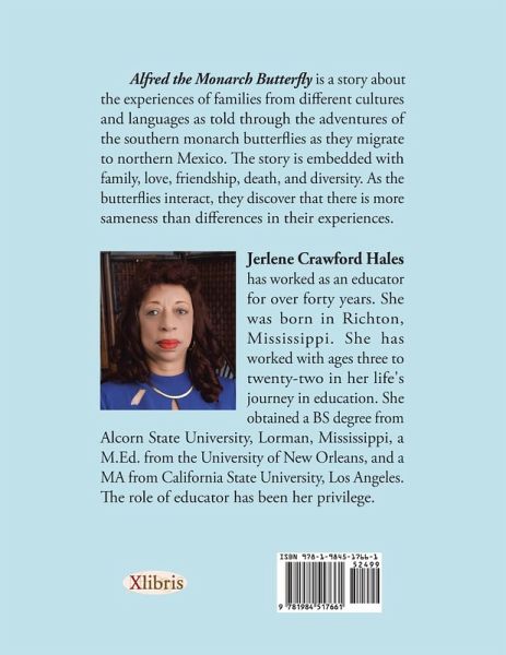 Alfred the Monarch Butterfly is a story about the experiences of families from different cultures and languages as told through the adventures of the southern monarch butterflies as they migrate to northern Mexico. The story is embedded with family, love, friendship, death, and diversity. As the butterflies interact, they discover that there is more sameness than differences in their experiences.