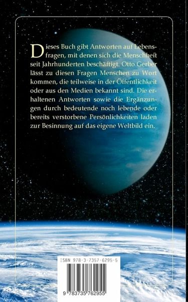 Dieses Buch gibt Antworten auf Lebensfragen, mit denen sich die Menschheit seit Jahrhunderten beschäftigt. Otto Gerber lässt zu diesen Fragen Menschen zu Wort kommen, die teilweise in der Öffentlichkeit oder aus den Medien bekannt sind. Die erhaltenen Antworten sowie die Ergänzungen durch bedeutende noch lebende oder bereits verstorbene Persönlichkeiten laden zur Besinnung auf das eigene Weltbild ein.