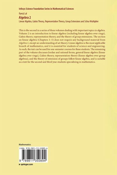 This is the second in a series of three volumes dealing with important topics in algebra. Volume 2 is an introduction to linear algebra (including linear algebra over rings), Galois theory, representation theory, and the theory of group extensions. The section on linear algebra (chapters 1-5) does not require any background material from Algebra 1, except an understanding of set theory. Linear algebra is the most applicable branch of mathematics, and it is essential for students of science and engineering As such, the text can be used for one-semester courses for these students. The remaining part of the volume discusses Jordan and rational forms, general linear algebra (linear algebra over rings), Galois theory, representation theory (linear algebra over group algebras), and the theory of extension of groups follow linear algebra, and is suitable as a text for the second and third year students specializing in mathematics.