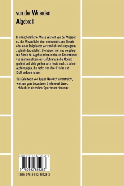Der Autor wurde am 2.2.1903 in Amsterdam geboren. Im Jahre 1924 ging er als Student nach Göttingen und wurde dort mit Emmy Noether und der abstrakten Algebra bekannt. Sein Hauptinteresse galt damals vor allem der Begründung der algebraischen Geometrie mit Hilfe der neuen algebraischen Methoden. Als er im Jahre 1926 als junger Doktor mit einem Rockefeller-Stipendium nach Hamburg kam, hatte er Gelegenheit, eine didaktisch hervorragende Algebra-Vorlesung von Emil Artin zu hören. Die Ausarbeitung, die er von dieser Vorlesung machte, wurde zum Kern des vorliegenden Werkes. Es erschien zuerst 1930…mehr