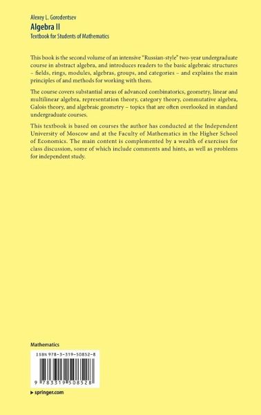 This book is the second volume of an intensive "Russian-style" two-year undergraduate course in abstract algebra, and introduces readers to the basic algebraic structures - fields, rings, modules, algebras, groups, and categories - and explains the main principles of and methods for working with them.