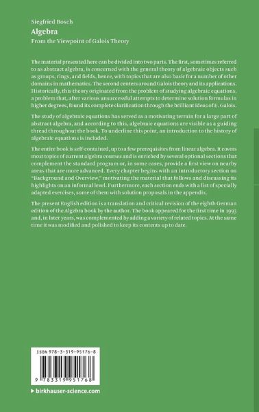The present English edition is a translation and critical revision of the eighth German edition of the Algebra book by the author. The book appeared for the first time in 1993 and, in later years, was complemented by adding a variety of related topics. At the same time it was modified and polished to keep its contents up to date.