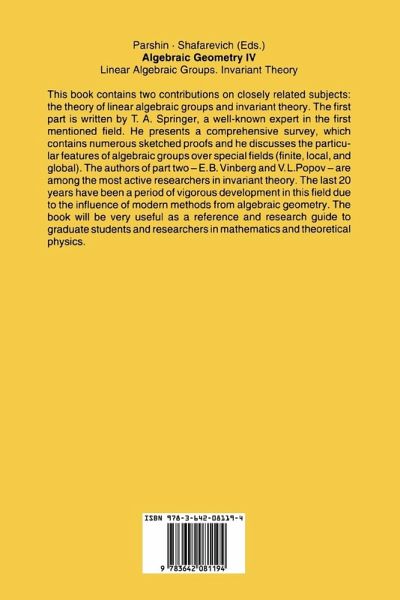 The problems being solved by invariant theory are far-reaching generalizations and extensions of problems on the "reduction to canonical form" of various is almost the same thing, projective geometry. objects of linear algebra or, what Invariant theory has a ISO-year history, which has seen alternating periods of growth and stagnation, and changes in the formulation of problems, methods of solution, and fields of application. In the last two decades invariant theory has experienced a period of growth, stimulated by a previous development of the theory of algebraic groups and commutative algebra. It is now viewed as a branch of the theory of algebraic transformation groups (and under a broader interpretation can be identified with this theory). We will freely use the theory of algebraic groups, an exposition of which can be found, for example, in the first article of the present volume. We will also assume the reader is familiar with the basic concepts and simplest theorems of commutative algebra and algebraic geometry; when deeper results are needed, we will cite them in the text or provide suitable references.