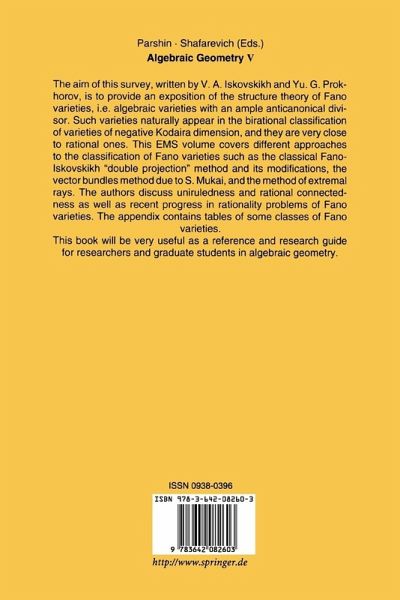 The aim of this survey, written by V.A. Iskovskikh and Yu.G. Prokhorov, is to provide an exposition of the structure theory of Fano varieties, i.e. algebraic vareties with an ample anticanonical divisor. Such varieties naturally appear in the birational classification of varieties of negative Kodaira dimension, and they are very close to rational ones. This EMS volume covers different approaches to the classification of Fano varieties such as the classical Fano-Iskovskikh "double projection" method and its modifications, the vector bundles method due to S. Mukai, and the method of extremal rays. The authors discuss uniruledness and rational connectedness as well as recent progress in rationality problems of Fano varieties. The appendix contains tables of some classes of Fano varieties.