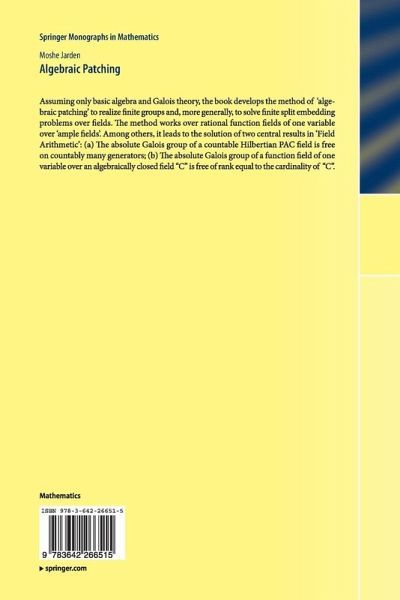 1. Algebraic Patching.- 2. Normed Rings.- 3. Several Variables.- 4. Constant Split Embedding Problems over Complete Fields.- 5. Ample Fields.- 6. Non-Ample Fields.- 7. Split Embedding Problems over Complete Fields.- 8. Split Embedding Problems over Ample Fields.- 9. The Absolute Galois Group of C(t).- 10. Semi-Free Profinite Groups.- 11. Function Fields of One Variable over PAC Fields.- 12. Complete Noetherian Domains.- Open Problems.- References.- Glossary of Notation.- Index.