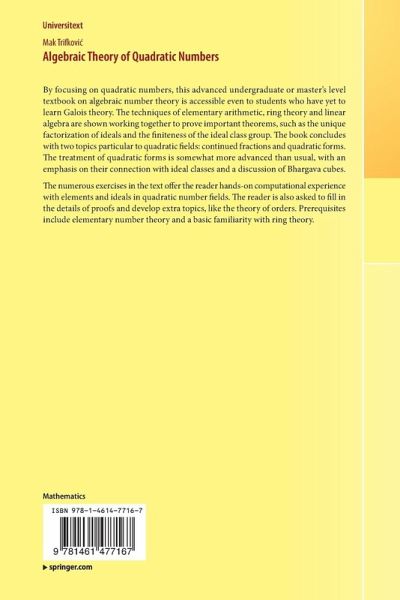 The numerous exercises in the text offer the reader hands-on computational experience with elements and ideals in quadratic number fields. The reader is also asked to fill in the details of proofs and develop extra topics, like the theory of orders. Prerequisites include elementary number theory and a basic familiarity with ring theory.