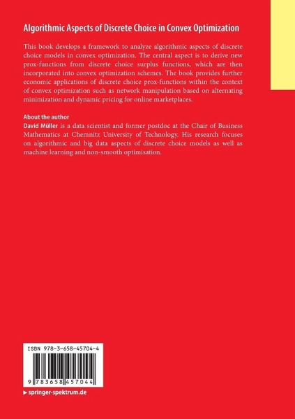 This book develops a framework to analyze algorithmic aspects of discrete choice models in convex optimization. The central aspect is to derive new prox-functions from discrete choice surplus functions, which are then incorporated into convex optimization schemes. The book provides further economic applications of discrete choice prox-functions within the context of convex optimization such as network manipulation based on alternating minimization and dynamic pricing for online marketplaces.