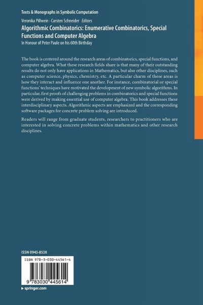 The book is centered around the research areas of combinatorics, special functions, and computer algebra. What these research fields share is that many of their outstanding results do not only have applications in Mathematics, but also other disciplines, such as computer science, physics, chemistry, etc. A particular charm of these areas is how they interact and influence one another. For instance, combinatorial or special functions' techniques have motivated the development of new symbolic algorithms. In particular, first proofs of challenging problems in combinatorics and special functions were derived by making essential use of computer algebra. This book addresses these interdisciplinary aspects. Algorithmic aspects are emphasized and the corresponding software packages for concrete problem solving are introduced. Readers will range from graduate students, researchers to practitioners who are interested in solving concrete problems within mathematics and other research disciplines.