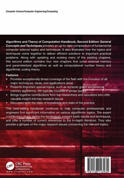 Algorithms and Theory of Computation Handbook, Second Edition: General Concepts and Techniques provides an up-to-date compendium of fundamental computer science topics and techniques. It also illustrates how the topics and techniques come together to deliver efficient solutions to important practical problems. Along with updating and revising many of the existing chapters, this second edition contains four new chapters that cover external memory and parameterized algorithms as well as computational number theory and algorithmic coding theory. This best-selling handbook continues to help computer professionals and engineers find significant information on various algorithmic topics. The expert contributors clearly define the terminology, present basic results and techniques, and offer a number of current references to the in-depth literature. They also provide a glimpse of the major research issues concerning the relevant topics.