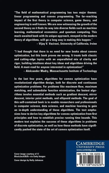 Algorithms for Convex Optimization are the workhorses of data-driven, technological advancements in machine learning and artificial intelligence. This concise, modern guide to deriving these algorithms is self-contained and accessible to advanced students, practitioners, and researchers in computer science, operations research, and data science.