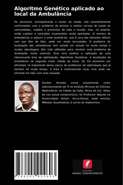 Os decisores, principalmente o sector da saúde, são constantemente confrontados com o problema de prestar o melhor serviço de saúde às comunidades, regiões e províncias de todo o mundo, mas, no entanto, estão sujeitos a restrições orçamentais muito apertadas. O número de ambulâncias a adquirir e onde localizá-las, que é uma das decisões difíceis com que têm de lidar, pode ser muito assustador. O problema da localização das ambulâncias tem estado em estudo há muito tempo e muitas abordagens têm sido utilizadas para resolver este problema de localização muito sensível. Este livro analisa a aplicação de uma interessante área de optimização, Algoritmos Genéticos, à localização da ambulância na segunda maior cidade do Gana. Os GA provaram ser eficientes no tratamento desta classe de problemas de optimização que já existem há muito tempo. A área é relativamente nova, mas pode ser eficiente em lidar com esta situação.
