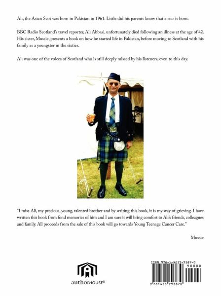 After the tragic death of the irrepressible Asian Scot, Ali Abbasi, in 2004, his sister Mussie Abbasi Harrison wrote this touching tribute to her inspirational little brother. The BBC Radio Scotland broadcaster Ali, had a wit, charm and warmth which left a lasting impression and endeared him to everyone he met. But more than that, he was a true champion of multi-culturalism: he spoke Gaelic as confidently as he cooked up a curry. This book charts Ali's remarkable life, from his arrival in Glasgow and his multi-ethnic upbringing, to his passion for the diversity of life and his quest to spread happiness around him. At the same time, Mussie has succeeded in painting a picture of what life was like for a modern Asian family growing up in Glasgow in the 60's and 70's, resulting in an historic and fascinating story which will have you laughing and crying . Moving tributes from family members, friends and admiring listeners; fantastic photographs and memories of Ali's trips to the Highlands and islands of Scotland make up the rich tapestry of this heartfelt book. For those who loved Ali Abbasi and for those who never met him but wished they had, here is a privileged glimpse inside the life of a truly unique individual.