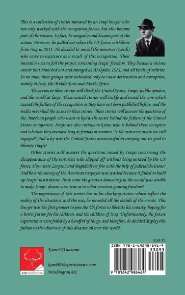 This is a collection of stories narrated by an Iraqi lawyer who not only worked with the occupation forces, but also became part of the mission. In fact, he merged in and became part of the action. However, he pulled out when the US forces withdrew from Iraq in 2011. He decided to unveil the monsters (Lords) who came to existence as a result of this occupation. Their intention was to foil the project concerning Iraqis' freedom. They became a vicious cancer that branched out and emerged as Al-Qaida, ISIS, and all kinds of militias. In no time, these groups were unleashed only to cause destruction and corruption, mainly in Iraq, the Middle East and North Africa. The action in these stories will shock the United States, Iraqis' public opinion, and the world at large. These untold stories will tackle and reveal the core which caused the failure of the occupation as they have not been published before, and the media never had the access to these stories. These stories will answer the questions of the American people who want to know the secret behind the failure of the United States occupation. Iraqis are also curious to know who is behind these occupiers and whether they invaded Iraq as friends or enemies. Is the war over or are we still engaged? And why was the United States unsuccessful in carrying out its goal to liberate Iraqis? Other stories will answer the questions raised by Iraqis concerning the disappearance of the terrorists who slipped off without being noticed by the US forces. How were Zerqawi and Baghdadi set free with the help of judicial decisions? And how the money of the American taxpayer was wasted because it failed to build up Iraqis' institutions. How come the greatest democracy in the world was unable to make Iraqis' dream come true as to what concerns gaining freedom? The importance of this writer lies in his shocking stories which reflect the reality of the situation, and the way he recorded all the details of the events. This lawyer was the first pioneer to join the US forces to liberate his country, hoping for a better future for his children, and the children of Iraq. Unfortunately, his future expectations were foiled by a handful of thugs, and therefore, he decided display this failure to the observers of this disaster all over the world.