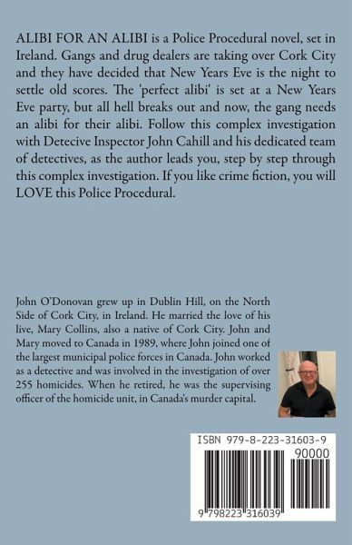ALIBI FOR AN ALIBI is a Police Procedural novel, set in Ireland. Gangs and drug dealers are taking over Cork City and they have decided that New Years Eve is the night to settle old scores. The 'perfect alibi' is set at a New Years Eve party, but all hell breaks out and now, the gang needs an alibi for their alibi. Follow this complex investigation with Detecive Inspector John Cahill and his dedicated team of detectives, as the author leads you, step by step through this complex investigation. If you like crime fiction, you will LOVE this Police Procedural.