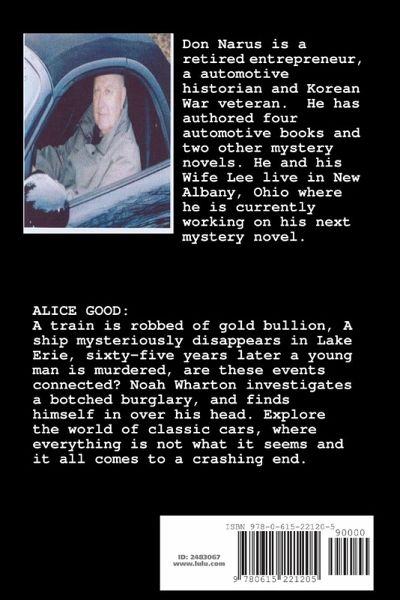 A train is robbed of gold bullion, a ship mysteriously disappears in Lake Erie, sixty-five years later a young man is murdered. Are these events connected? Noah Wharton investigates what appears to be a botched burglary and finds himself in over his head. Explore the wold of Classic Cars, ship wrecks and sunken treasure, where everything is not what it seems and it all comes to a crashing end.