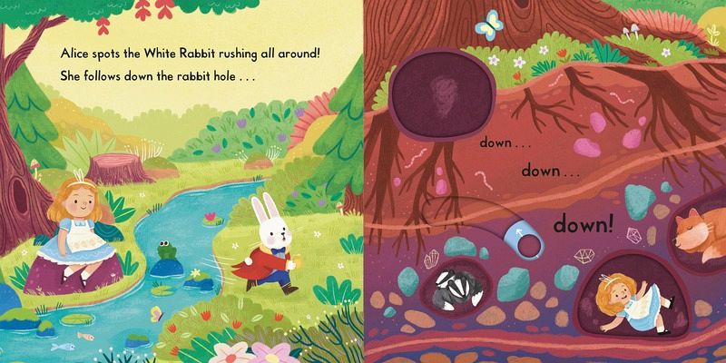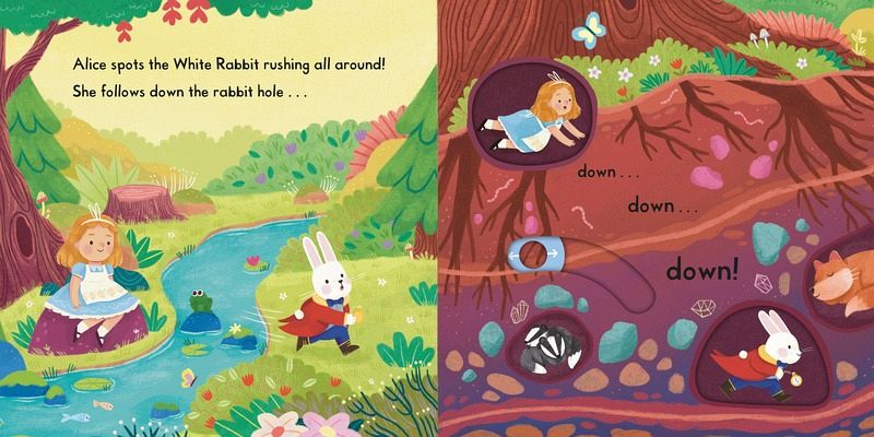 Push, pull and slide the colourful scenes to bring a classic story to life in this delightful introduction for toddlers to Lewis Carroll's Alice in Wonderland! Little ones can immerse themselves in a magical world as they follow Alice down the rabbit hole, meeting a cast of wondrous characters, including the White Rabbit, Mad Hatter and the Queen of Hearts. Reimagined for a new generation with vibrant illustrations by Nadia Gunawan, this is perfect for toddlers who like to play as they read, with the story retold in gentle rhyming text to capture their imagination and easy-to-handle mechanisms to develop fine motor skills. Listen along to an audio recording of this story by scanning the QR code on the back cover. Discover more magical tales in the First Stories series with Beauty and the Beast, The Jungle Book and Snow White.