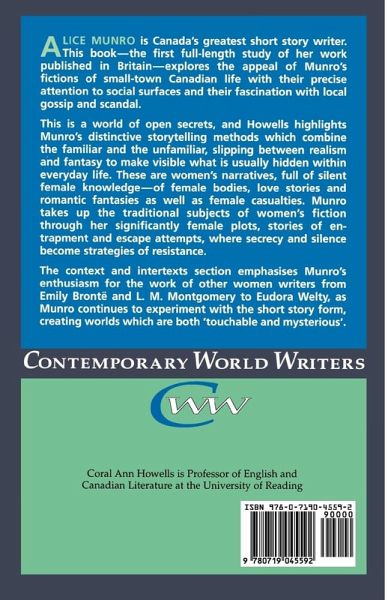 This is the first full-length study of Alice Munro's work to be published in Britain. Highlights Munro's distinctive storytelling methods where everything becomes both 'touchable and mysterious'.