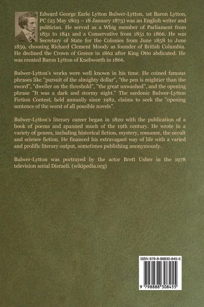 Published in 1838, Alice, or The Mysteries picks up the story of the disenchanted poet-gone-politician-gone-recluse Ernest Maltravers, his early love Alice Darvil and his underhanded antagonist Lumley Ferrers. Whereas, after Florence Lascelles's death, Ernest has withdrawn from the world, everything seems to go well with Lumley, who has inherited the title of Lord Vargrave and started a political career. There is only the want of a fortune with which to further his social ambitions that keeps Lumley busy, and he is quite sure to lay hands on his late uncle's vast inheritance by marrying the latter's ward Evelyn, a marriage that has been wished for, but not commanded by his dying relative. However, Fate, at its most willful, again throws Ernest into Lumley's way for when Maltravers meets the gentle and charming heiress and falls in love with her, the girl's reservations against her long-time fiancé Lumley begin to grow, and the cynical politician again begins to plot against his former friend. ...( Tristram Shandy) About the Author: Edward George Earle Lytton Bulwer-Lytton, 1st Baron Lytton, PC (25 May 1803 - 18 January 1873) was an English writer and politician. He served as a Whig member of Parliament from 1831 to 1841 and a Conservative from 1851 to 1866. He was Secretary of State for the Colonies from June 1858 to June 1859, choosing Richard Clement Moody as founder of British Columbia. He declined the Crown of Greece in 1862 after King Otto abdicated. He was created Baron Lytton of Knebworth in 1866. Bulwer-Lytton's works were well known in his time. He coined famous phrases like "pursuit of the almighty dollar", "the pen is mightier than the sword", "dweller on the threshold", "the great unwashed", and the opening phrase "It was a dark and stormy night." The sardonic Bulwer-Lytton Fiction Contest, held annually since 1982, claims to seek the "opening sentence of the worst of all possible novels". Bulwer-Lytton's literary career began in 1820 with the publication of a book of poems and spanned much of the 19th century. He wrote in a variety of genres, including historical fiction, mystery, romance, the occult and science fiction. He financed his extravagant way of life with a varied and prolific literary output, sometimes publishing anonymously. Bulwer-Lytton was portrayed by the actor Brett Usher in the 1978 television serial Disraeli. (wikipedia.org)