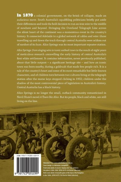 In 1870 a colonial government, on the brink of collapse, made an audacious move. South Australia's squabbling politicians briefly put aside their differences and took the bold decision to run an iron wire to the middle of nowhere and beyond. Stringing the Overland Telegraph Line across the silent heart of the continent was a momentous event in the country's history. It connected Adelaide to a global network of cables and wire: those travelling up and down the track through central Australia were seldom out of earshot of its hum. Alice Springs was its most important repeater station. Alice Springs: from singing wire to iconic outback town is the result of eight years of meticulous research unravelling the early history of central Australia's first white settlement. It contains information, never previously published, about that little outpost - a significant heritage site - and how an iconic town was born nearby, during a goldrush that made few people rich. It is a tale of the country's heart and some of its most remarkable but little-known characters, and of children torn between two cultures living at the telegraph station after the morse keys stopped clicking in 1932; children under the shadow of the most controversial piece of legislation in Australia's history. Central Australia has a black history. Alice Springs is no longer the small, outback community romanticised in Nevil Shute's novel A Town like Alice. But its people, black and white, are still living on the line.