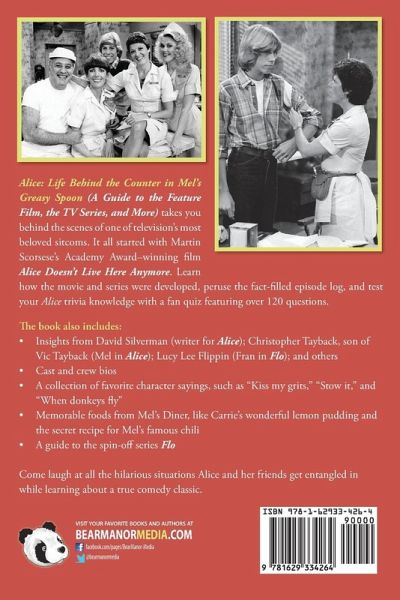 Alice: Life Behind the Counter in Mel’s Greasy Spoon (A Guide to the Feature Film, the TV Series, and More) takes you behind the scenes of one of television’s most beloved sitcoms. It all started with Martin Scorsese’s Academy Award–winning film Alice Doesn’t Live Here Anymore. Learn how the movie and series were developed, peruse the fact-filled episode log, and test your Alice trivia knowledge with a fan quiz featuring over 120 questions. The book also includes: Insights from David Silverman (writer for Alice); Christopher Tayback, son of Vic Tayback (Mel in Alice); Lucy Lee Flippin (Fran in Flo); and others Cast and crew bios A collection of favorite character sayings, such as "Kiss my grits," "Stow it," and "When donkeys fly" Memorable foods from Mel’s Diner, like Carrie’s wonderful lemon pudding and the secret recipe for Mel’s famous chili A guide to the spin-off series Flo Come laugh at all the hilarious situations Alice and her friends get entangled in while learning about a true comedy classic.