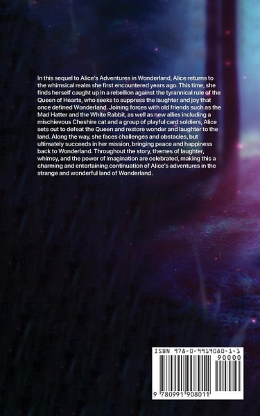 Alice: Revenge of the Queen The Queen of Hearts has returned, and this time, she's out for blood. Imprisoned in a distant tower, she has spent years plotting her revenge against Alice and all who defied her. With cunning manipulation and ruthless ambition, she escapes captivity, assembling a dark alliance of Wonderland's most dangerous and disillusioned inhabitants. From the enigmatic Cheshire Cat to the vengeful March Hare, each ally has their own reasons for turning against Alice, and together, they weave a web of deception that threatens to consume Wonderland. Alice, blissfully unaware of the looming danger, finds herself caught in a twisted game where reality bends and nothing is as it seems. A grand feast is announced in her honor-a lavish spectacle meant to celebrate Wonderland's most beloved heroine. But beneath the glamour lurks a deadly trap, set by the Queen herself. As Alice and her friends revel in the festivities, the Queen prepares to deliver the final blow. With Wonderland spiraling into chaos, Alice must navigate a treacherous path filled with cryptic riddles, ancient prophecies, and allies who may not be what they seem. The Caterpillar whispers of fate, the Mad Hatter spins riddles of madness, and the Cheshire Cat grins from the shadows, ever the master of misdirection. Time itself begins to unravel as Alice is forced to confront not only the Queen's vengeance but the very nature of Wonderland's magic. Can Alice outwit the Queen of Hearts once more, or will Wonderland be reshaped by the darkness of her wrath? In a battle where illusion and reality blur, the fate of Wonderland-and Alice's very soul-hangs in the balance. A thrilling tale of betrayal, redemption, and the power of resilience, Alice: Revenge of the Queen is a darkly enchanting return to a world where whimsy meets terror, and no one-not even Alice-is safe from the shadows of the past.
