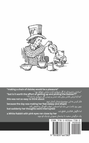 "making a chain of daisies would be a pleasure" "ساختن زنجیره ای از گل مروارید لذت بخش خواهد بود" "but is it worth the effort of getting up and picking the daisies " "اما آیا ارزش تلاش برای بلند شدن و چیدن گل مروارید را دارد؟؟" this was not so easy to think about فکر کردن به این موضوع چندان آسان نبود because the day was making her feel sleepy and stupid چون روز باعث می شد او احساس خواب آلودگی و احمقی کند but suddenly her thoughts were interrupted اما ناگهان افکارش قطع شد a White Rabbit with pink eyes ran close by her یک خرگوش سفید با چشمان صورتی نزدیک او دوید There was nothing overly remarkable about the rabbit هیچ چیز بیش از حد قابل توجهی در مورد خرگوش وجود نداشت and Alice did not think the rabbit remarkable either و آلیس فکر نمی کرد که خرگوش قابل توجه باشد nor did it surprise her when the Rabbit spoke همچنین وقتی خرگوش صحبت می کرد او را شگفت زده نکرد "Oh dear! I shall be too late!" he said to himself "اوه عزیزم! من خیلی دیر خواهم شد! او با خود گفت but then the Rabbit did something that rabbits didn't do اما بعد خرگوش کاری کرد که خرگوش ها انجام ندادند