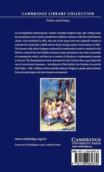 An accomplished mathematician and photographer, Charles Lutwidge Dodgson (1832-98), writing under the pseudonym Lewis Carroll, transformed children's literature with this world-famous classic. First published in 1865, this tale of the topsy-turvy was originally created to entertain the young Alice Liddell and her sisters during a picnic in the summer of 1862. The humour with which Dodgson enlivened his mathematical works is exploited to the full here: many of the now-familiar nonsense songs and poems in the story are parodies of contemporary works, and there are a number of allusions to mathematical concepts in the text. The illustrations by Punch cartoonist Sir John Tenniel (1820-1914) depict the cast of much-loved characters - including the White Rabbit, the Cheshire Cat and the Mad Hatter - with a brilliance which perfectly enhances Dodgson's gently satirical fantasy. In its universal appeal, the story remains unsurpassed.