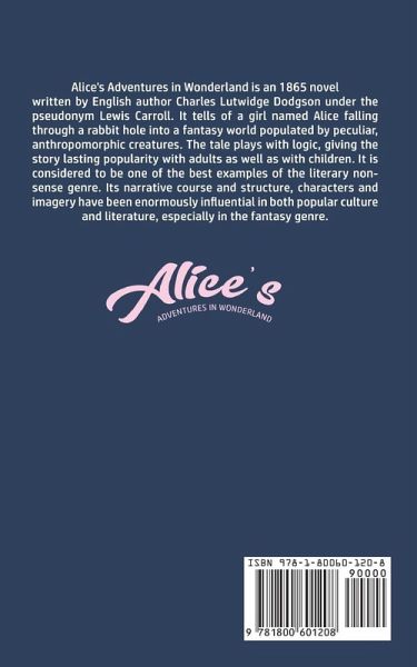 Do you want to read Alice's Adventures in Wonderland? If so then keep reading... Alice's Adventures in Wonderland is an 1865 novel written by English author Charles Lutwidge Dodgson under the pseudonym Lewis Carroll. It tells of a girl named Alice falling through a rabbit hole into a fantasy world populated by peculiar, anthropomorphic creatures. The tale plays with logic, giving the story lasting popularity with adults as well as with children. It is considered to be one of the best examples of the literary nonsense genre. Its narrative course and structure, characters and imagery have been…mehr