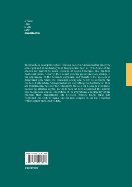 Soft drinks with pHs lower than 4. 0 are subjected to minimum pasteuri- tion at 65 °C for 10 min as required by the Japanese Food Sanitation Law. Not only pathogenic bacteria but most spore-forming bacteria are unable to grow at this low pH condition, and thus reports of microbial spoilage in pasteurized acidic soft drinks are rare. Since 1982, when the spoilage of aseptically packed apple juice was - tributed to a new type of acidophilic spore-forming bacteria in Germany, a succession of similar complaints regarding other fruit juice concentrates and their products has been received. In the beginning, the bacteria were classified in the genus Bacillus, but later, in 1992, the new genus Ali- clobacillus was proposed owing to their characteristic cellular membranes containing omega-alicyclic fatty acids. A group of Alicyclobacillus strains, responsible for the tainting of fruit juices, was then described as A. a- doterrestris in 1999. They are acidophilic and grow preferably at around pH 4. 0. They are thermophilic and grow better at temperatures above 40 °C. This indicates that we might have been missing them by our or- nary methods of bacterial detection at pH 7. 0 and 35 °C. Their spores are not inactivated by the pasteurizing conditions generally applied to juice concentrates and juice-containing beverages. Above all, because the bac- ria do not produce gas, consumers do not see any sign of spoilage until they open the product and notice its unpleasant taint.