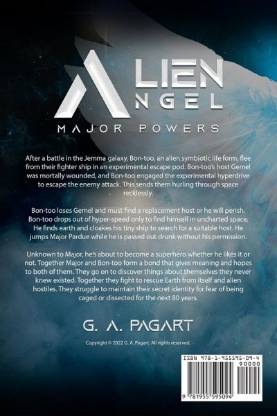 After a battle in the Jemma galaxy, Bon-too, an alien symbiotic life form, flee from their fighter ship in an experimental escape pod. Bon-too's host Gemel was mortally wounded, and Bon-too engaged the experimental hyperdrive to escape the enemy attack. This sends them hurling through space recklessly. Bon-too loses Gemel and must find a replacement host or he will perish. Bon-too drops out of hyper-speed only to find himself in uncharted space. He finds earth and cloakes his tiny ship to search for a suitable host. He jumps Major Pardue while he is passed out drunk without his permission. Unknown to Major, he's about to become a superhero whether he likes it or not. Together Major and Bon-too form a bond that gives meaning and hopes to both of them. They go on to discover things about themselves they never knew existed. Together they fight to rescue Earth from itself and alien hostiles. They struggle to maintain their secret identity for fear of being caged or dissected for the next 80 years.