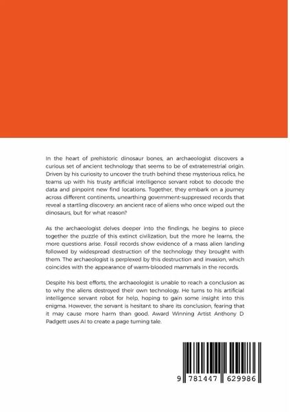 In the heart of prehistoric dinosaur bones, an archaeologist discovers a curious set of ancient technology that seems to be of extraterrestrial origin. Driven by his curiosity to uncover the truth behind these mysterious relics, he teams up with his trusty artificial intelligence servant robot to decode the data and pinpoint new find locations. Together, they embark on a journey across different continents, unearthing government-suppressed records that reveal a startling discovery: an ancient race of aliens who once wiped out the dinosaurs, but for what reason? As the archaeologist delves deeper into the findings, he begins to piece together the puzzle of this extinct civilization, but the more he learns, the more questions arise. Fossil records show evidence of a mass alien landing followed by widespread destruction of the technology they brought with them. The archaeologist is perplexed by this destruction and invasion, which coincides with the appearance of warm-blooded mammals in the records. Despite his best efforts, the archaeologist is unable to reach a conclusion as to why the aliens destroyed their own technology. He turns to his artificial intelligence servant robot for help, hoping to gain some insight into this enigma. However, the servant is hesitant to share its conclusion, fearing that it may cause more harm than good. Award winning Artist Anthony D Padgett uses AI to create this page turner.