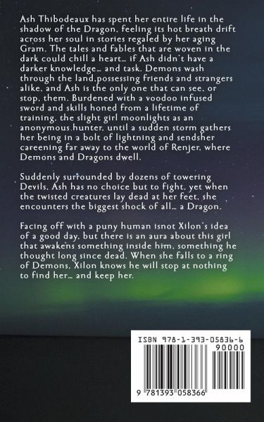 Ash Thibodeaux has spent her entire life in the shadow of the Dragon, feeling its hot breath drift across her soul in stories regaled by her aging Gram. The tales and fables that are woven in the dark could chill a heart... if Ash didn't have a darker knowledge... and task. Demons wash through the land, possessing friends and strangers alike, and Ash is the only one that can see, or stop, them. Burdened with a voodoo infused sword and skills honed from a lifetime of training, the slight girl moonlights as an anonymous hunter, until a sudden storm gathers her being in a bolt of lightning and sends her careening far away to the world of Renjer, where Demons and Dragons dwell. Suddenly surrounded by dozens of towering Devils, Ash has no choice but to fight, yet when the twisted creatures lay dead at her feet, she encounters the biggest shock of all... a Dragon. Facing off with a puny human is not Xilon's idea of a good day, but there is an aura about this girl that awakens something inside him, something he thought long since dead. When she falls to a ring of Demons, Xilon knows he will stop at nothing to find her... and keep her.