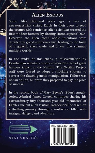 Some fifty thousand years ago, a race of extraterrestrials visited Earth. In their quest to seed the cosmos with sentience, alien scientists created the first modern humans by altering Homo sapiens' DNA. However, the alien race's noble intentions were derailed by greed and power lust, leading to the birth of a galactic slave trade and a war that spanned multiple worlds. In the midst of this chaos, a miscalculation by Domhanian scientists produced a vicious race of giant humans known as the Nefilim. The Nefilim Project staff were forced to adopt a shocking strategy to correct the flawed genetic manipulation. Failure was not an option, but were they prepared to pay the price of success? In the second book of Gary Beene's 'Eden's Angels' series, Admiral James Cortell continues sharing his extraordinary fifty-thousand-year-old "memories" of Earth's ancient alien visitors. Readers will be taken on a thrilling journey through a multiverse filled with intrigue, danger, and adventure.