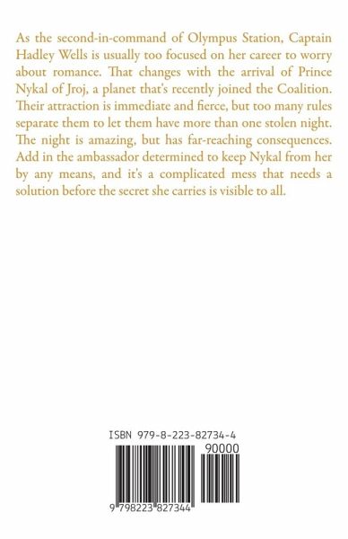 As the second-in-command of Olympus Station, Captain Hadley Wells is usually too focused on her career to worry about romance. That changes with the arrival of Prince Nykal of Jroj, a planet that's recently joined the Coalition. Their attraction is immediate and fierce, but too many rules separate them to let them have more than one stolen night. The night is amazing, but has far-reaching consequences. Add in the ambassador determined to keep Nykal from her by any means, and it's a complicated mess that needs a solution before the secret she carries is visible to all.
