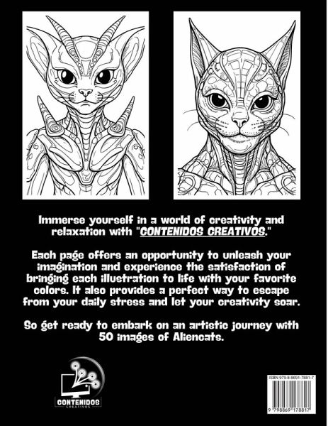 "Aliencats: Fabulous Feline Alien Coloring Pages" invites you into a galaxy where whiskered wonders meet cosmic curiosities across 50 captivating illustrations. Each page showcases the enchanting charm of these extraterrestrial cats. Delve into their mysterious world with your artistic touch, bringing their unique features to life with a range of vivid hues. Whether prowling alien landscapes or lounging on distant moons, these fantastic felines will ignite your imagination and take you on an interstellar coloring adventure unlike any other.