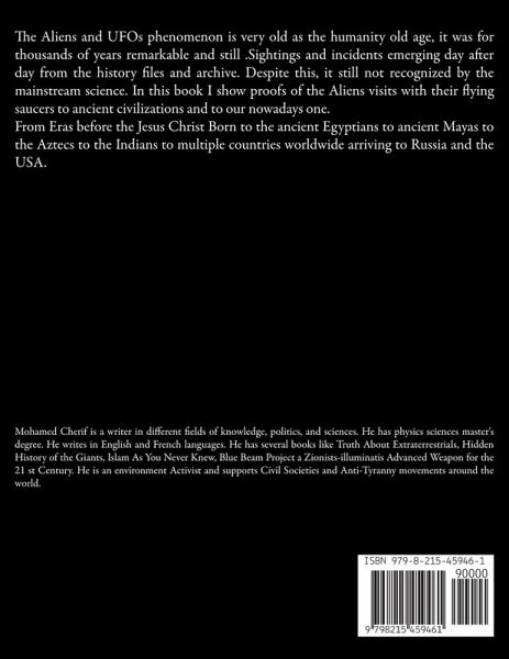 The Aliens and UFOs phenomenon is very old as the humanity old age, it was for thousands of years remarkable and still .Sightings and incidents emerging day after day from the history files and archive. Despite this, it still not recognized by the mainstream science. In this book I show proofs of the Aliens visits with their flying saucers to ancient civilizations and to our nowadays one. From Eras before the Jesus Christ Born to the ancient Egyptians to ancient Mayas to the Aztecs to the Indians to multiple countries worldwide arriving to Russia and the USA.