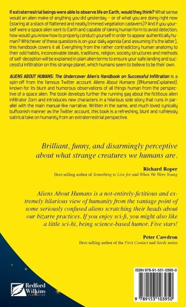 Every seasoned alien infiltrator who has ever had to operate undercover as a human will concur: humans are not an easy species to make sense of. Their behaviours and interactions are mostly contradictory. Their codes, traditions, and beliefs are utterly bizarre. Should you, fellow alien, ever have to go undercover as a human, make sure to read this manual first. ALIENS ABOUT HUMANS: The Undercover Alien's Handbook on Successful Infiltration offers an extraterrestrial perspective on human society through a blend of dark comedy and sharp satire. This parody manual for aliens humorously explains in a pseudo-scientific way how humans work and think, and how an undercover alien should navigate all the peculiarities and dysfunctions of humanity to avoid being compromised. By viewing the world through an alien lens, it exposes inconsistencies and flaws in everything from everyday items we take for granted to ethical norms, religion, and societal structures. Born from the popular Twitter account Aliens About Humans (@HumansExplained), known for its blunt and humorous takes, this book develops the ongoing gag about the fictitious alien infiltrator Zorn and introduces new characters in a hilarious side story, enhancing the cultural misunderstandings and satirical commentary its fans adore. If you relish the wit of Douglas Adams's The Hitchhiker's Guide to the Galaxy and the blunt buffoonery of Diane Morgan's Philomena Cunk, this parody and satire novel is your ticket to a refreshing and brutally disarming view of humanity from an alien viewpoint.