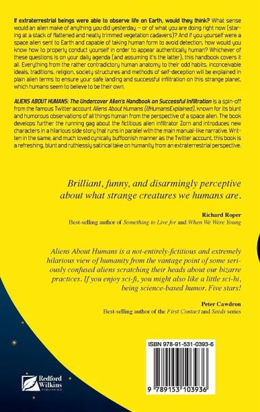 Every seasoned alien infiltrator who has ever had to operate undercover as a human will concur: humans are not an easy species to make sense of. Their behaviours and interactions are mostly contradictory. Their codes, traditions, and beliefs are utterly bizarre. Should you, fellow alien, ever have to go undercover as a human, make sure to read this manual first. ALIENS ABOUT HUMANS: The Undercover Alien's Handbook on Successful Infiltration offers an extraterrestrial perspective on human society through a blend of dark comedy and sharp satire. This parody manual for aliens humorously explains in a pseudo-scientific way how humans work and think, and how an undercover alien should navigate all the peculiarities and dysfunctions of humanity to avoid being compromised. By viewing the world through an alien lens, it exposes inconsistencies and flaws in everything from everyday items we take for granted to ethical norms, religion, and societal structures. Born from the popular Twitter account Aliens About Humans (@HumansExplained), known for its blunt and humorous takes, this book develops the ongoing gag about the fictitious alien infiltrator Zorn and introduces new characters in a hilarious side story, enhancing the cultural misunderstandings and satirical commentary its fans adore. If you relish the wit of Douglas Adams's The Hitchhiker's Guide to the Galaxy and the blunt buffoonery of Diane Morgan's Philomena Cunk, this parody and satire novel is your ticket to a refreshing and brutally disarming view of humanity from an alien viewpoint.